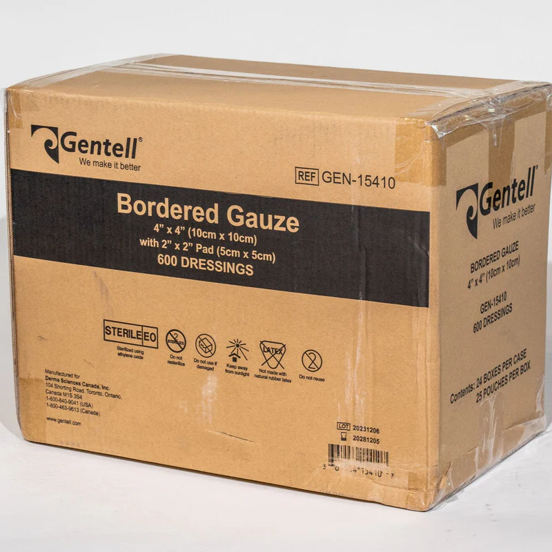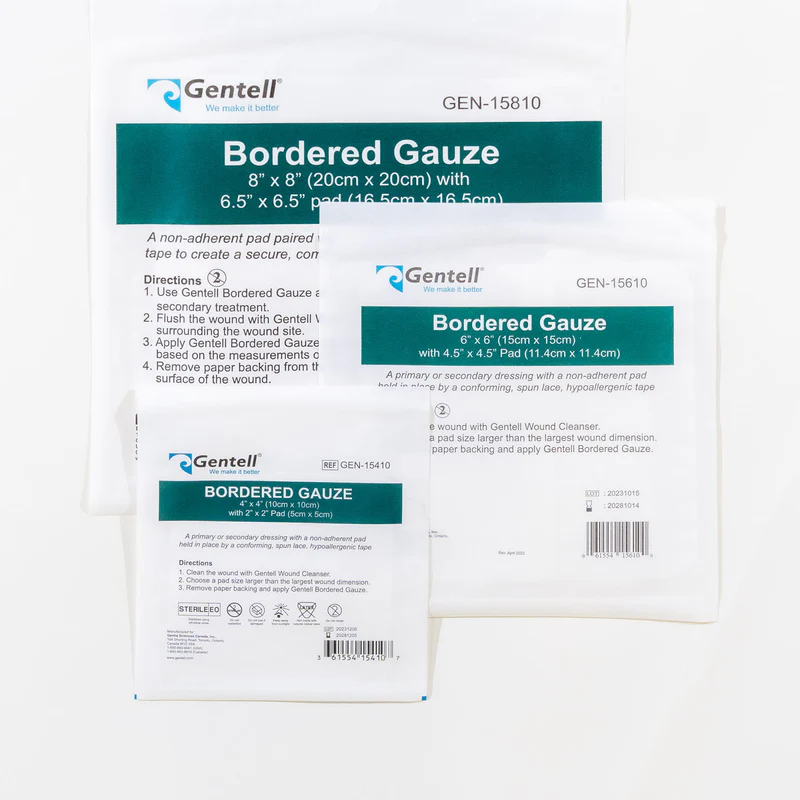 Gentell Bordered Gauze is a multi-purpose wound dressing that saves nursing time and is easy to apply. A non-adherent pad is paired with a conforming beveled spun-lace tape to create a secure, comfortable dressing that stays in place. May be used as a primary or secondary dressing.