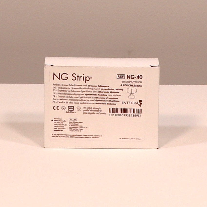 NG Strip® is a securement device for any nasogastric or nasal feeding tube. NG Strip eliminates the time consuming ritual of securing nasal tubing with strips of irritating tape. NG Strip provides excellent tape-to-skin adhesion while minimizing the tension that may result in irritation, blistering, or skin shear. NG Strip also minimizes the chance of irritation and tissue necrosis that are common with conventional tapes. Does not contain natural rubber latex. Available in adult, pediatric and infant sizes