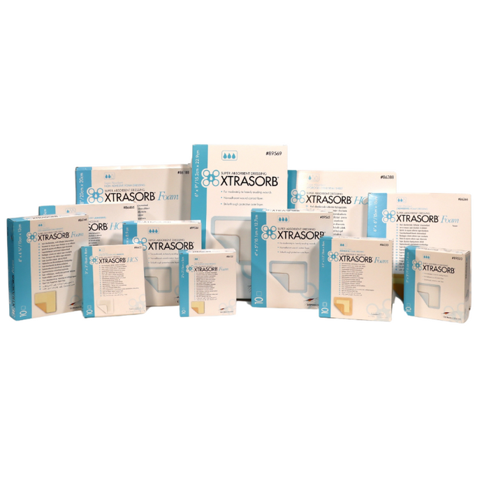 Xtrasorb® dressings come in a variety of formats and sizes. Each absorbs and retains more moisture than market leading competitive dressings. The exceptional fluid retention and moisture vapor transmission may contribute to increased time between dressing changes and reduce risk of maceration and exposure to the harmful components within wound fluid.